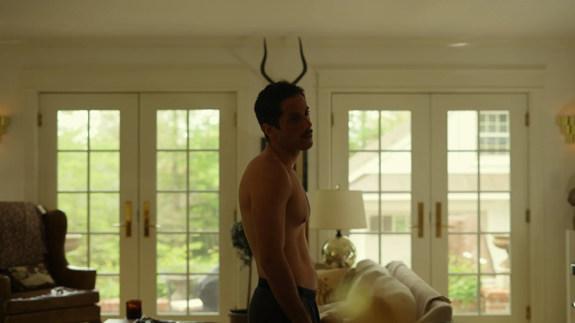 Upon finding himself alone, a man prepares for the object of his desire to return.